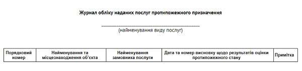 Журнал обліку наданих послуг протипожежного призначення (Додаток № 9)