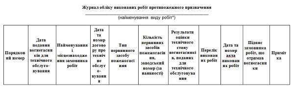 Журнал обліку виконаних робіт протипожежного призначення (Додаток № 7)