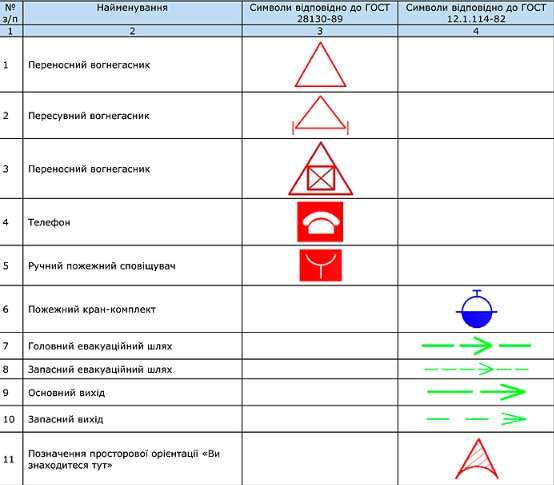 - напрямки руху осіб до найближчих евакуаційних виходів: внутрішніх сходових клітин, зовнішніх сходів, виходів на вулицю.