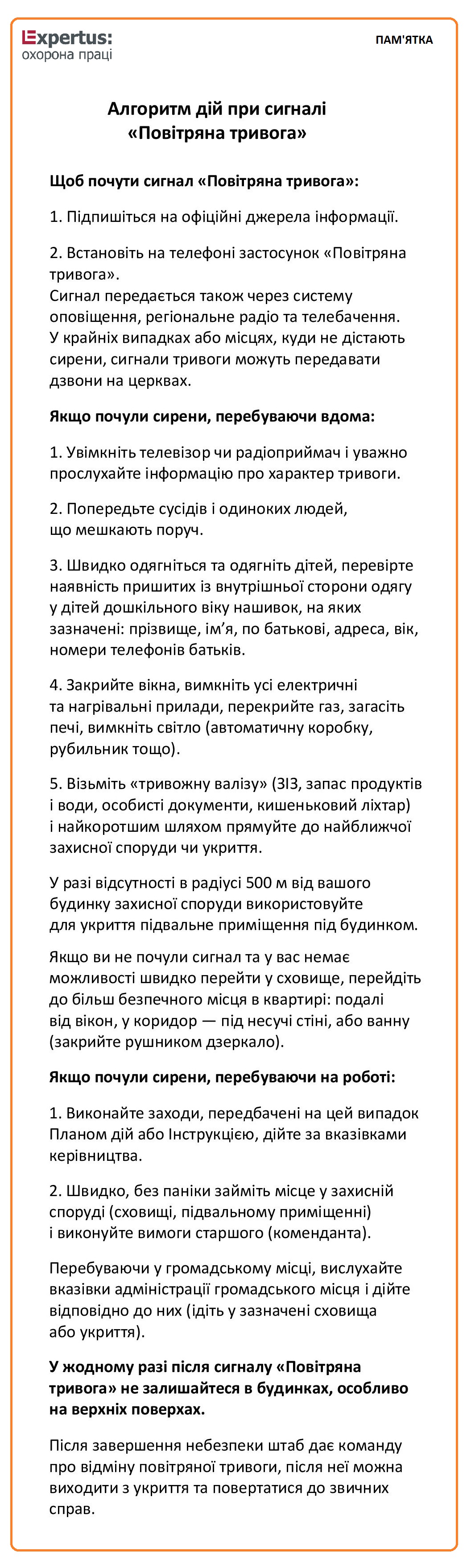 Скачайте пам'ятку та дізнайтеся: як діяти, якщо повітряна тривога застала вас вдома, і як діяти, якщо ви почули сигнал на роботі